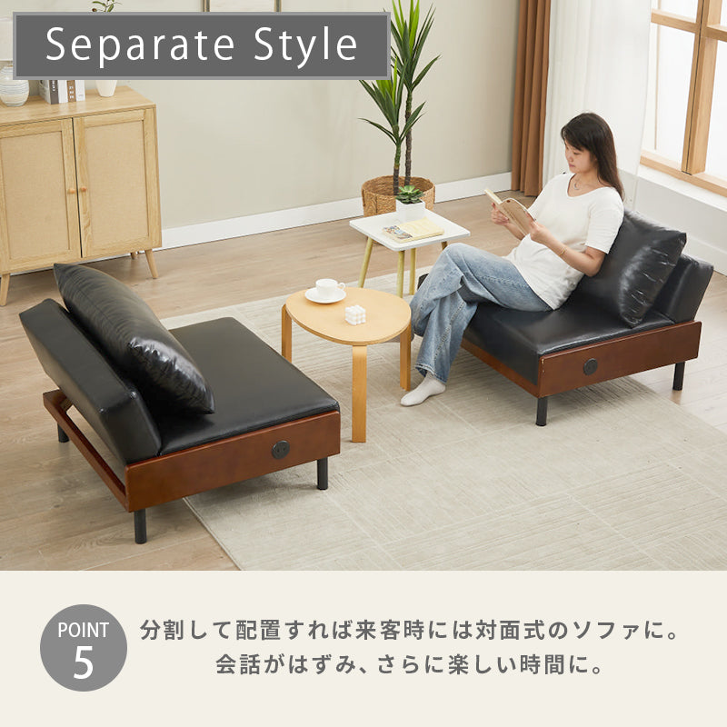 シーンに合わせて自由にレイアウトできる、便利な分割式2人掛けソファ。
