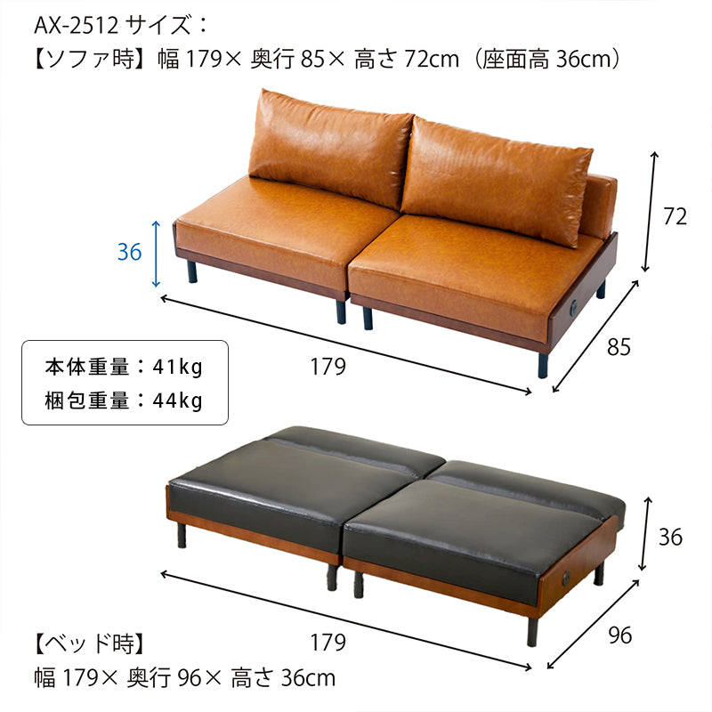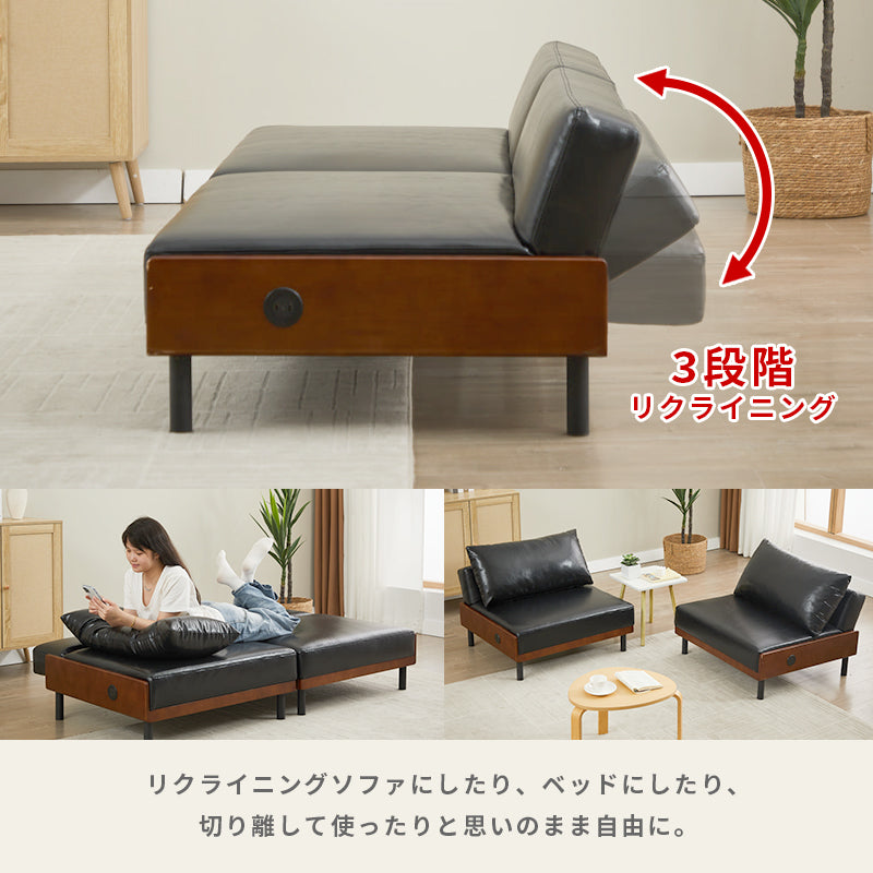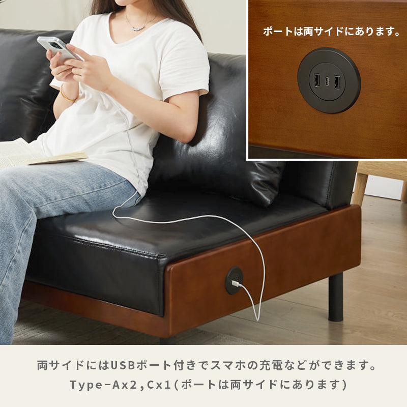 両サイド USB付 6WAY ソファベッド ソファ 2人掛け PVC セパレート おしゃれ 二人掛け ソファー 2人掛けソファ 2Pソファ  ローソファ 2P 2人 セパレートソファ 一人掛け  ワイド 一人暮らし リビング 布 シンプル 北欧 アーバン通商 ub-ax-2512