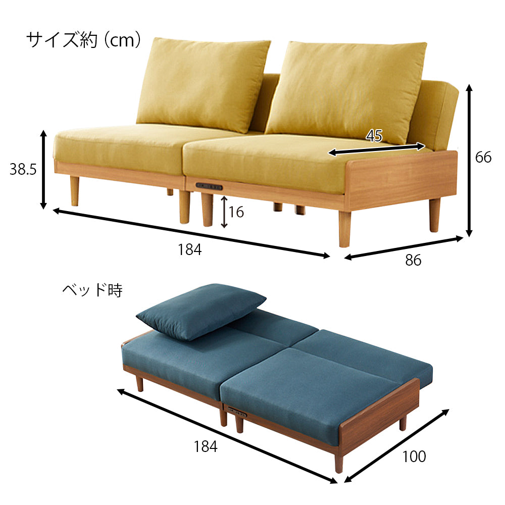 コンセント付 分割 マルチ ソファベッド AX-1738 スマホ レイアウト 充電 自在